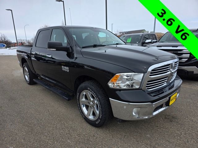 2017 Ram 1500 Big Horn *Great Local Trade-in, Air Conditioning ATC w/Dual Zone Control, Auto-Dimming Exterior Mirrors, Auto-Dimming Rear-View Mirror, Big Horn Badge, Big Horn Regional Package, Bright/Bright Billets Grille, Class IV Receiver Hitch, Electric Shift-On-Demand Transfer Case, Electroluminescent Instrument Cluster, Exterior Mirrors Courtesy Lamps, Exterior Mirrors w/Supplemental Signals, Fog Lamps, Glove Box Lamp, Leather Wrapped Steering Wheel, LED Bed Lighting, Overhead Console w/Garage Door Opener, ParkSense Front/Rear Park Assist System, ParkView Rear Back-Up Camera, Power Heated Fold-Away Mirrors, Power-Folding Mirrors, Premium Cloth 40/20/40 Bench Seat, Quick Order Package 22S Big Horn, Radio: Uconnect 3C w/8.4" Display, Rear Dome w/On/Off Switch Lamp, Remote Start System, Security Alarm, Steering Wheel Mounted Audio Controls, Sun Visors w/Illuminated Vanity Mirrors, Underhood Lamp, Wheels: 20" x 8" Aluminum Chrome Clad. Brilliant Black Crystal Pearlcoat Odometer is 19061 miles below market average! 4WD